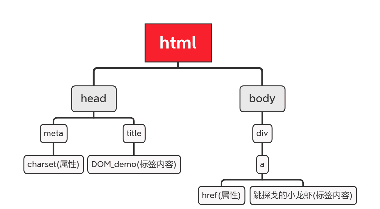 在DOM中,HTML文档的层次结构被表示为一个树形结构。并用document对象表示该文档,树的每个子节点表示HTML文档中的不同内容。